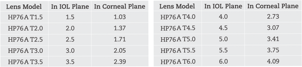 • Wide range of toric models to correct astigmatism from 1D to 6D in the corneal plane