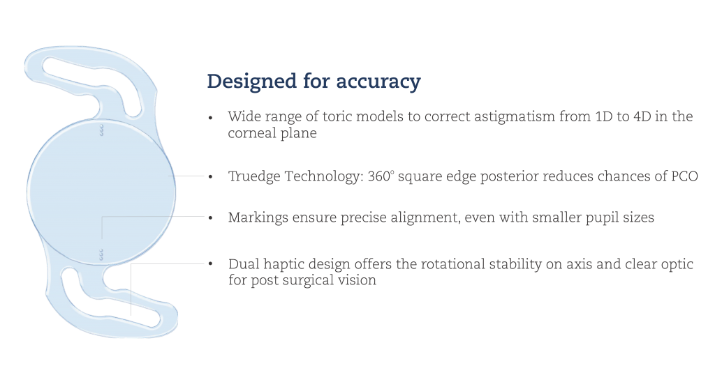 • Truedge Technology: 360 degree square edge posterior reduces chances of PCO