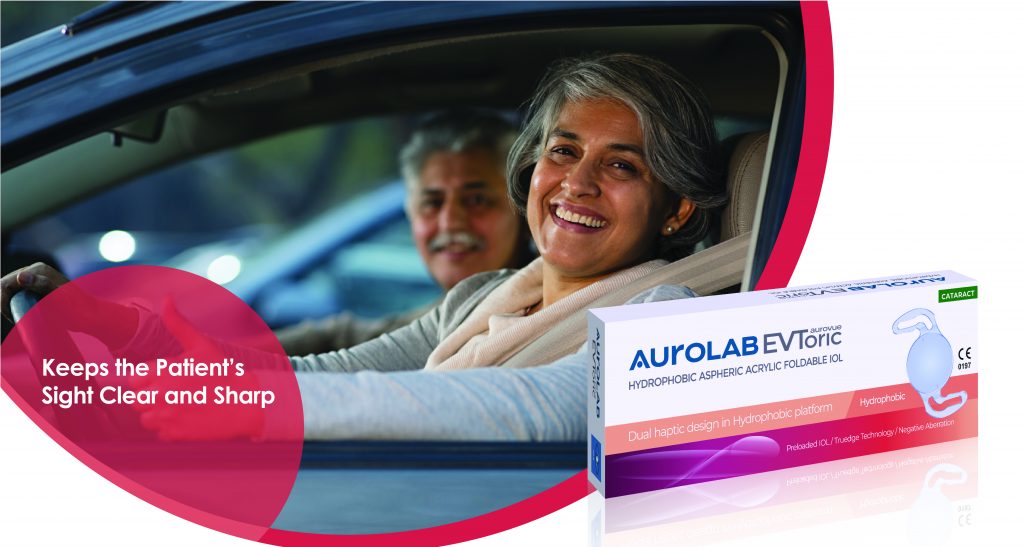 Aurovue EV aspheric Toric IOL is manufactured from highly bio-compatible hydrophobic acrylic polymer is different from other lens materials, because it has optimum tackiness, which helps bind the IOL to the capsule for better rotational stability.