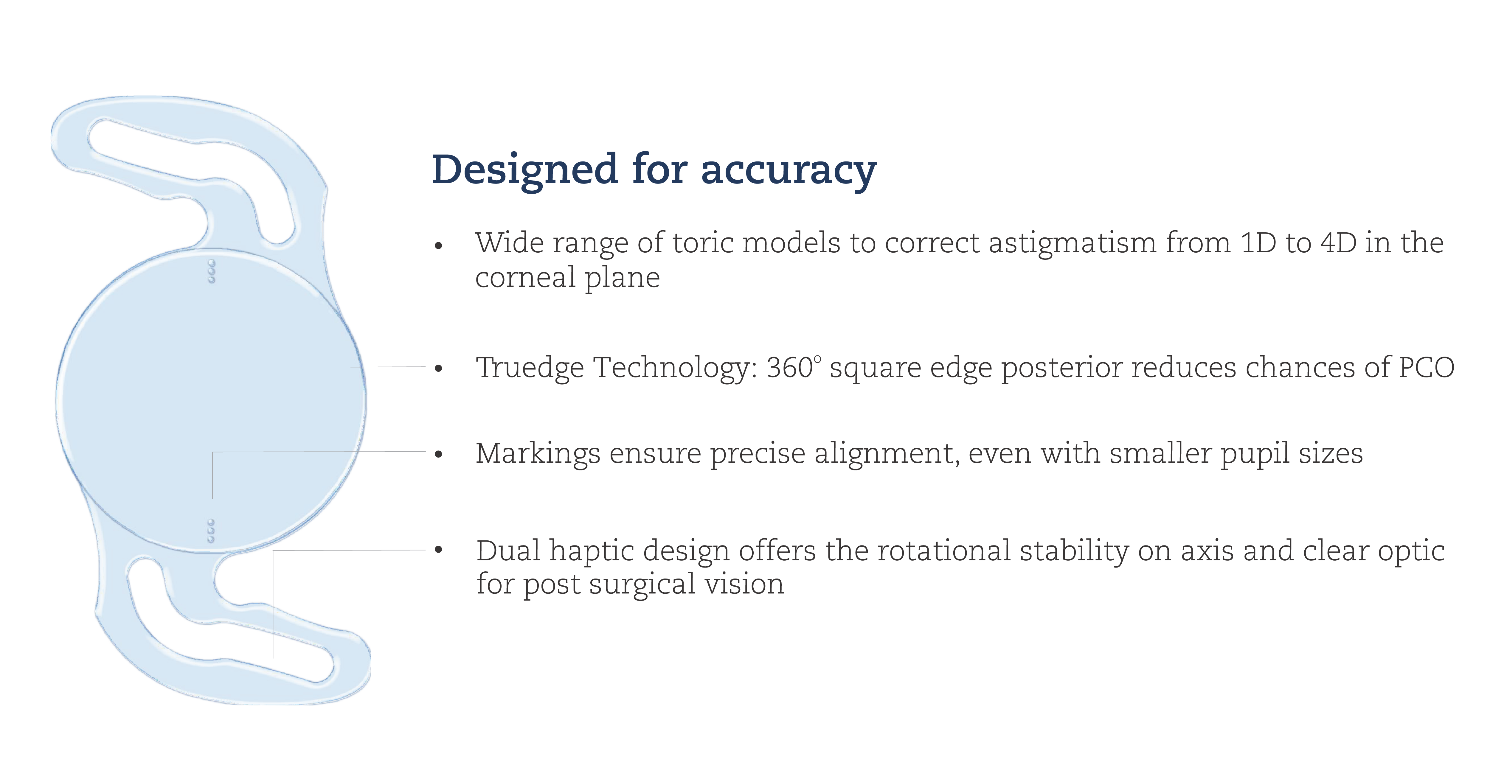 • Truedge Technology: 360 degree square edge posterior reduces chances of PCO